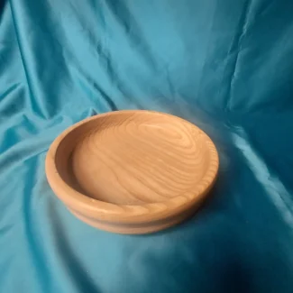 Skál á fæti. Skálin er úr samlímdu rauðu Beyki. B: 17,5 sm. H: 9,5 sm.